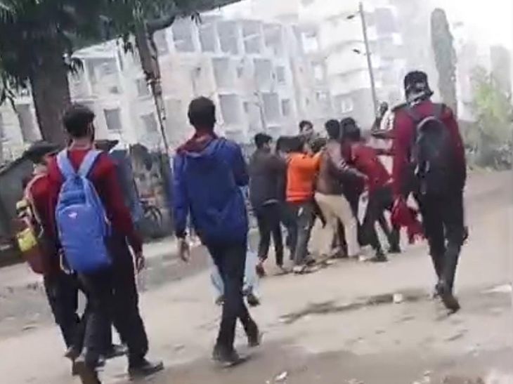 मारपीट के दौरान का एक स्क्रीनशॉट वायरल वीडियो से लिया गया है, जिसमें छात्रों के बीच की तीखी बहस और शारीरिक संघर्ष को स्पष्ट रूप से देखा जा सकता है। इस प्रकार की हिंसक घटनाएं शिक्षण संस्थानों के लिए एक गंभीर चिंता का विषय बन गई हैं।